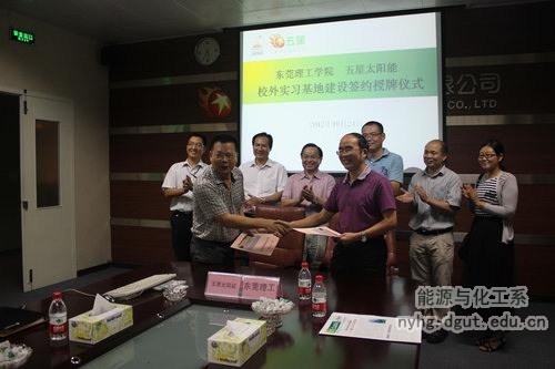 10月24日下午,我校能源与化工系与广东五星太阳能股份有限公司签署建立校外实习基地协议并举行了实习基地挂牌仪式,这是能源与化工系首个校外实习基地。校教务处处长王卫平教授、能源与化工系负责人徐勇军教授、党总支副书记张敏老师、能源与化工系教师左远志博士、蒋润花博士、广东五星太阳能股份有限公司董事长胡广良先生、市场总监张演生先生参与了仪式。王卫平教授代表校方与对方签署了校外实习基地建设协议。 在随后的座谈中,双方就2013届毕业生实习、校企科研合作、订单式人才联合培养等问题进行了深入探讨。双方表示,校外实习基地是学生培养和锻炼的重要平台,也是双方加强科研、人才培养等全方位合作的桥梁,双方愿意以此为契机,开展广泛而深入的合作,形成高校与地方企业互相扶持、共同发展的双赢局面。