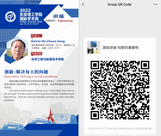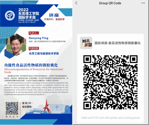 本届国际学术周,化能学院共邀请了四位知名专家给我校师生讲授各领域的前沿知识,分别是澳大利亚联邦科学与工业组织首席科学家Danyang Ying教授、墨西哥国立自治大学的Adalberto Noyola教授、戴森高级工程经理Kelvin Ho Choon Seng博士和英国帝国理工学院Duan Yu副研究员,助教老师分别是化能学院刘宇佳博士、洪南龙博士、陈佰满博士和何奎博士,涉及领域广泛,包括化工、环境、能源、食品和工程创新等相关内容,主要采用线上授课方式。以下是四门国际讲座的海报和预报名微信群,请感兴趣的同学加入微信群,向老师了解具体讲座信息,包括讲座的时间、授课方式和具体内容等。